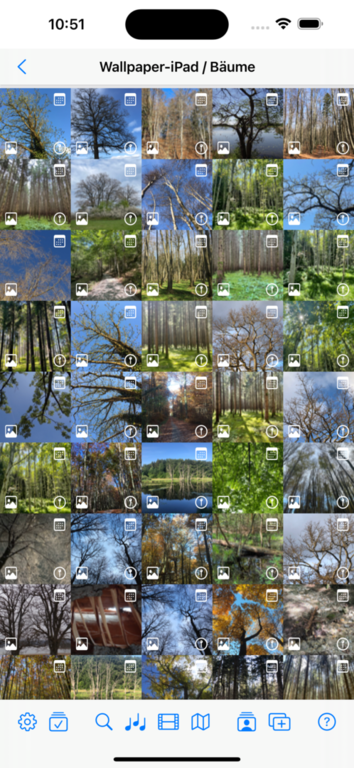 तो फिर “माई फोटोज एंड वीडियोज” ऐप सही विकल्प है। उपलब्ध मेमोरी के आधार पर, ऐप 100,000 फोटो या वीडियो तक के थंबनेल प्रदर्शित और प्रबंधित कर सकता है।