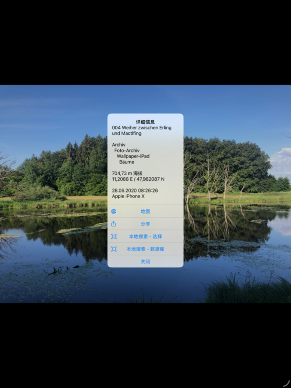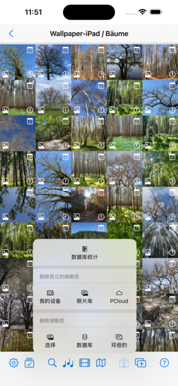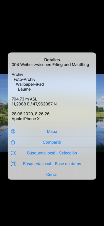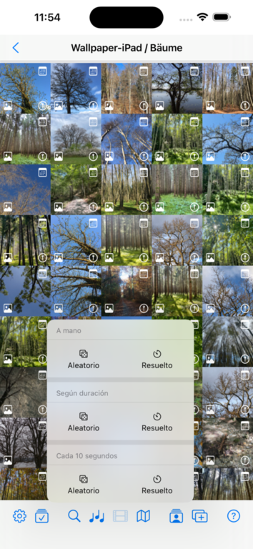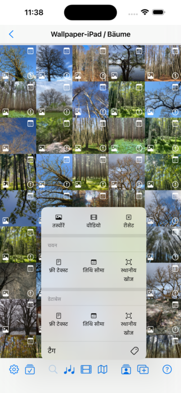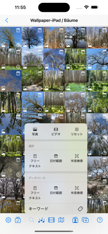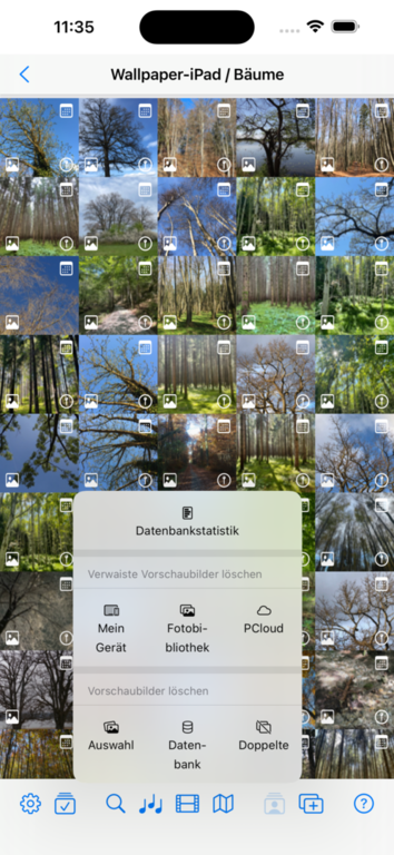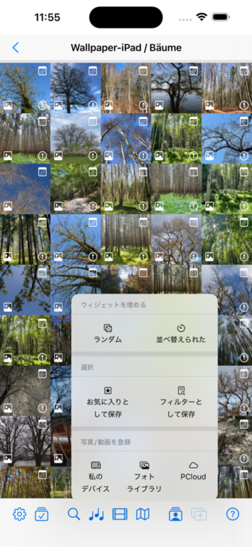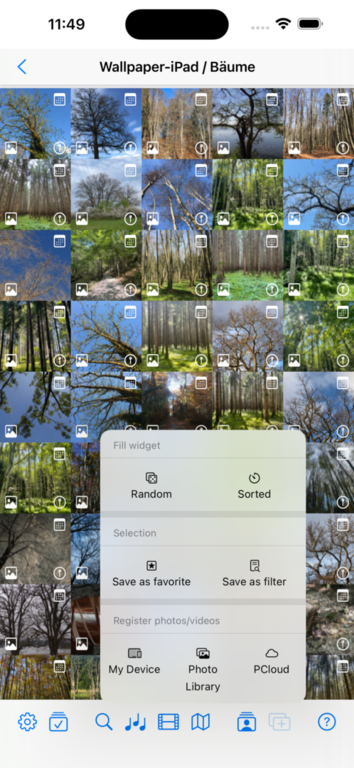 Currently, files with the extensions jpeg, jpg, png, bmp, wmf, heic, mp4, m4v, mov, avi, wmv and hecv can be managed, which are stored in the local photo library, in other apps accessible via the Files app on the device or in a pCloud.