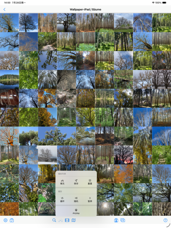 使用搜索功能,可以根据目录和文件名过滤显示的缩略图。可以开始以固定或单独的时间间隔自动幻灯片放映,按字母顺序或随机顺序显示(和过滤)原始照片和视频。